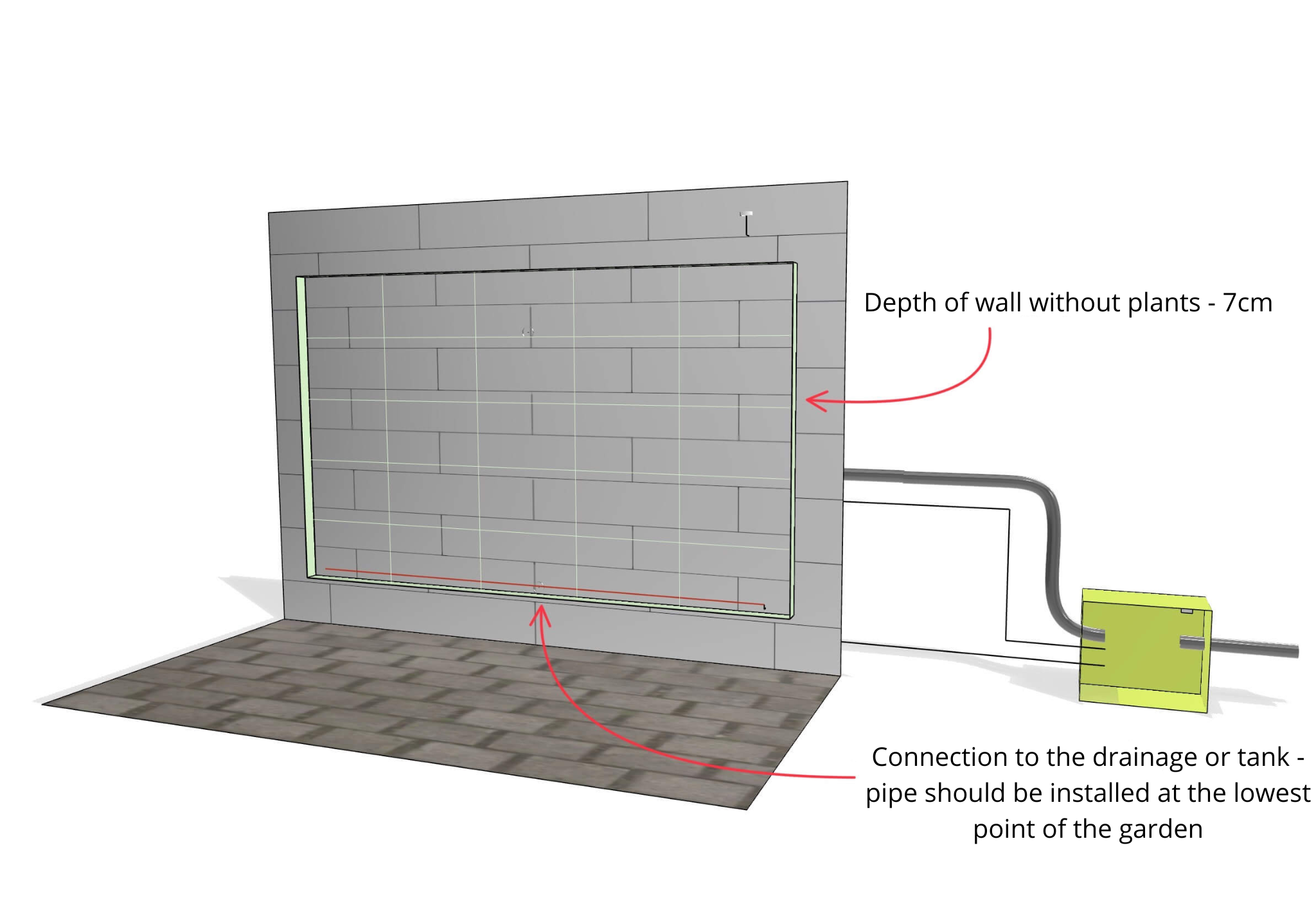 The method of constructing the drainage connection depends on the height at which the green wall begins.